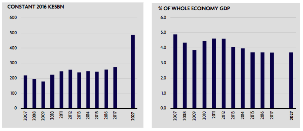 - Note: 100 Kenyan shillings (KES) is approximately US$1. The graph above left shows billions of Kenyan shillings.