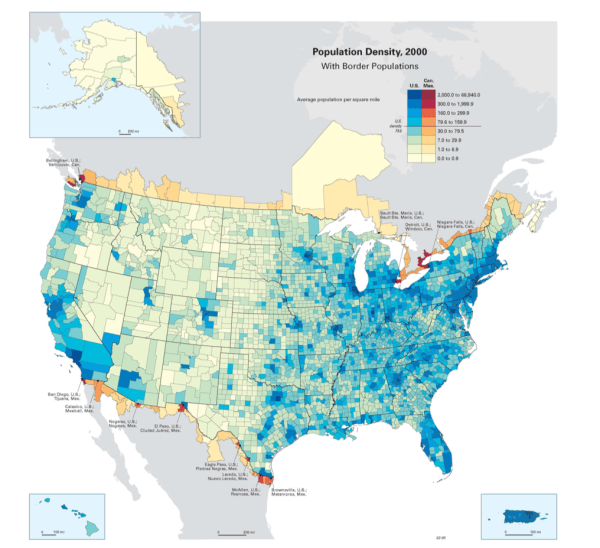 - Map of population density in USA and border regions. Source: Anonymous, 2008. No title. https://cohn.files.wordpress.com/2008/04/population-density.png Accessed 24th November 2017.