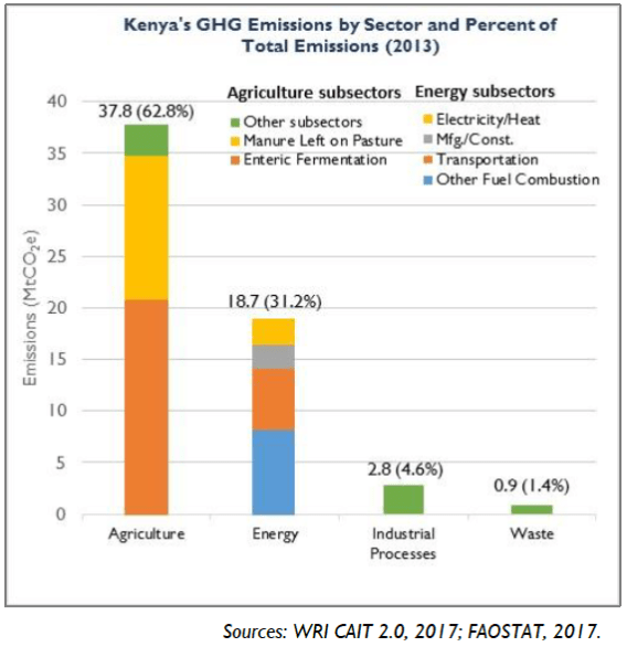 - Kenya’s Greenhouse Gas (GHG) emissions, 2013. Source: Government of Kenya, 2013.