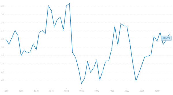- Kenya CO2 emissions (metric tons per capita), 1960-2014. Source: World Bank, 2014.