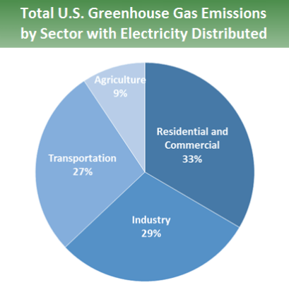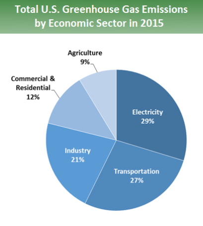 - Sources of Greenhouse Gas Emissions in the USA. Source: EPA, 2015