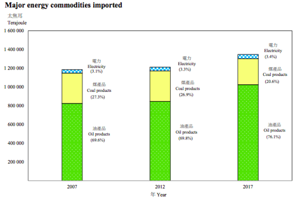 - Major energy commodities imported to Hong Kong, 2007-2017. Source: Census and Statistics Department, 2017, page 3.