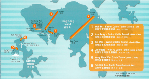 - Cable transmission tunnels across Hong Kong Island. Source: HK Electric, 2014, page 3.