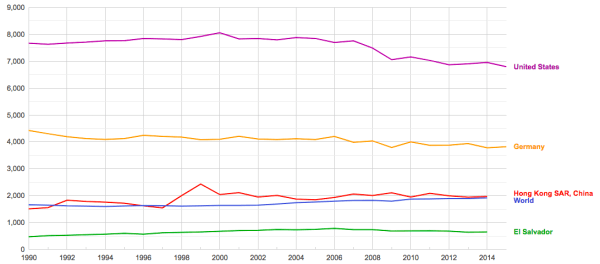- Hong Kong compared to other selected locations in terms of energy use per capita (energy use in kilograms of oil equivalent, per capita). Source: Google Public Data Explorer, 2019.