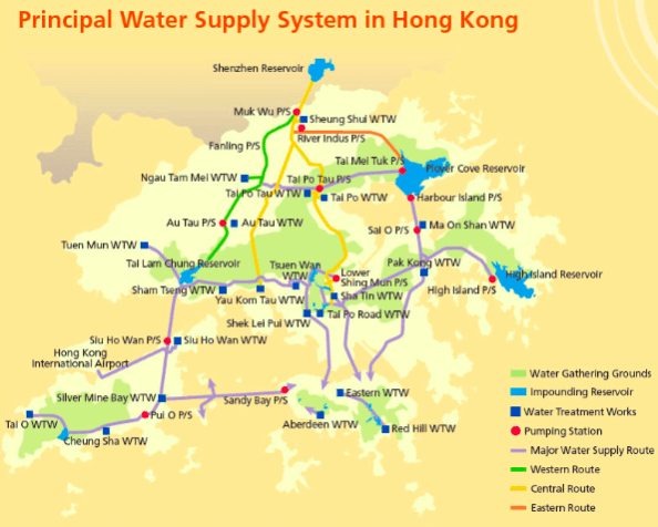 - The network of water pipes that make up the principle water supply system in Hong Kong. Source: Water Supplies Department, 2017.