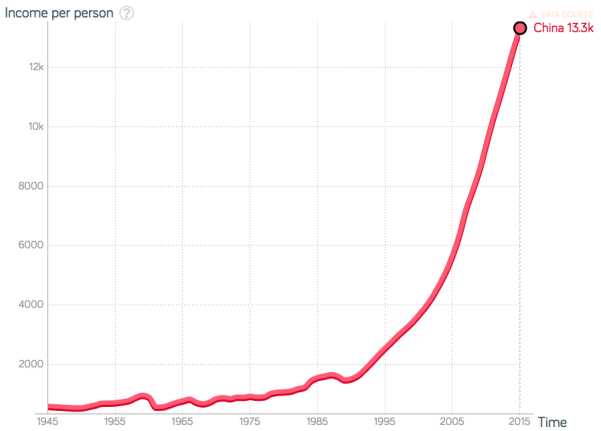 - Source: Gapminder, 2017. Income Per Person in China 1945-2015. http://www.gapminder.org/tools