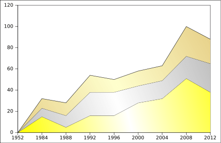 China has been gaining ground in its sporting achievements as shown by summer Olympic medals won, in the graph below (Laurent, 2017).