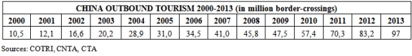 It is not just that Chinese people are becoming wealthier and spending more; the number of people travelling abroad is also increasing, as shown in the table below (Jian-jun and Nas, 2014).