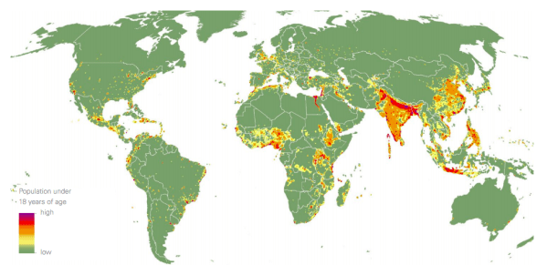 - Population under 18 years of age per sq km (2015). Source: UNICEF, 2015.