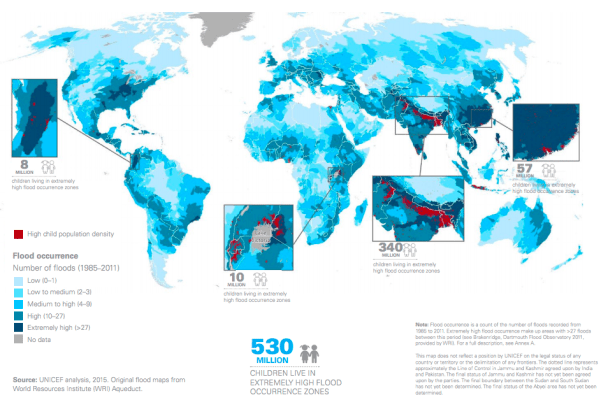 - Children living in flood occurrence zones. Source: UNICEF, 2015.
