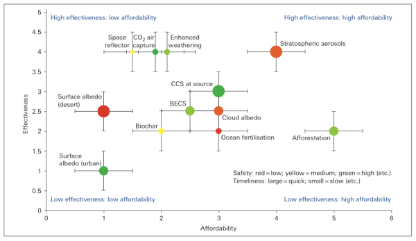 - Evaluation of the effectiveness, affordability, safety, and timeliness of various proposed geoengineering techniques Source: Royal Society, 2009.