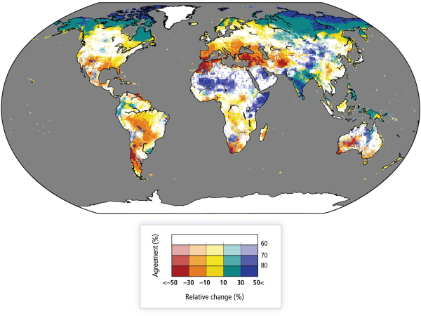 - Percentage change of mean annual streamflow for a global mean temperature rise of 2°C above 1980–2010 (2.7°C above pre-industrial). Source: IPCC, 2014 (p242)