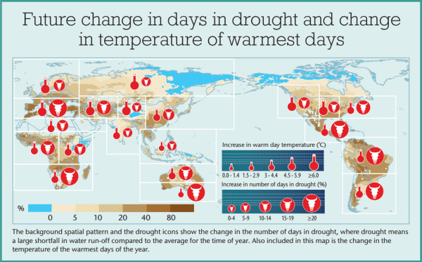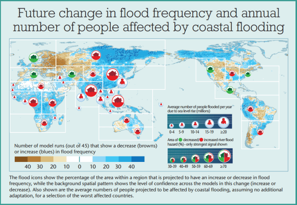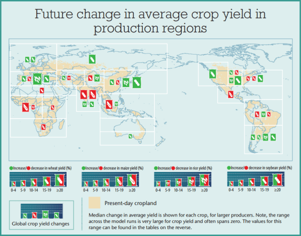 As we have seen above, eight of the ten largest displacements in 2016 were in Asia. However, in the future this problem might be expected to be even more widespread. The graphs below show some predictions of future scenarios regarding flooding, drought and crop yield, each of which would suggest that people may be forced to migrate.