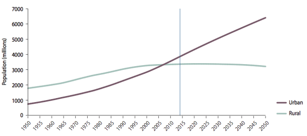- Urban and rural population of the world, 1950–2050. Source: UNPD, 2014, p7
