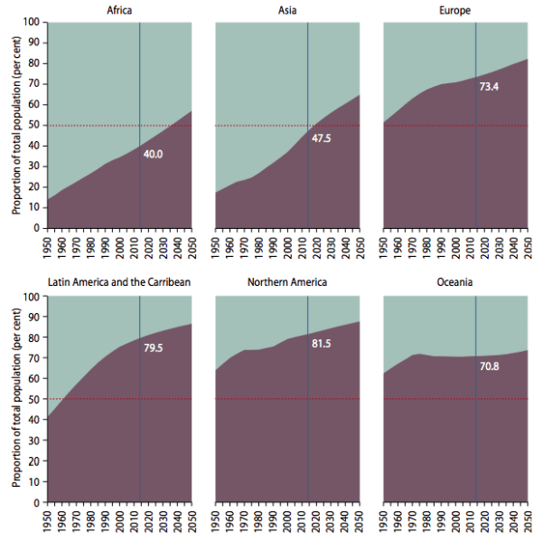 - Urban and rural population as proportion of total population, by major areas, 1950–2050. Source: UNPD, 2014, p8