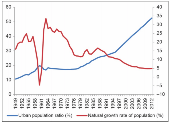 - Urbanization Ratio and Natural Growth Rate of Population since 1949. Source: Lu and Xia, 2016 p20.
