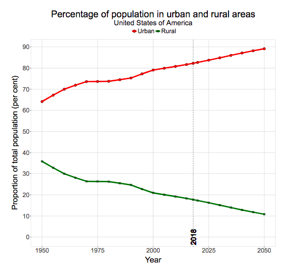 - The United States is forecast to have urbanization. Source: ESA, 2018.