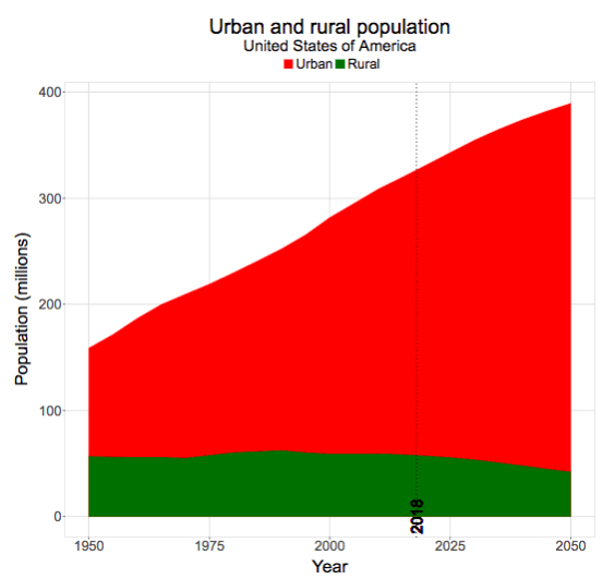- The United States is forecast to have urban growth. Source: ESA, 2018.