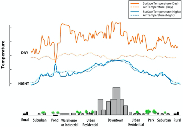 - The temperature variation over an urban area. Source: EPA, 2017.
