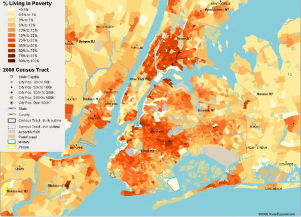 - Describe the distribution of impoverished people across New York City’s metropolitan area. [3]