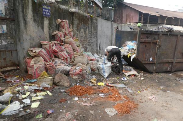 - A man sorts through rubbish in Dhaka, Bangladesh, one of the poorest and largest cities on Earth. Source: By the author.